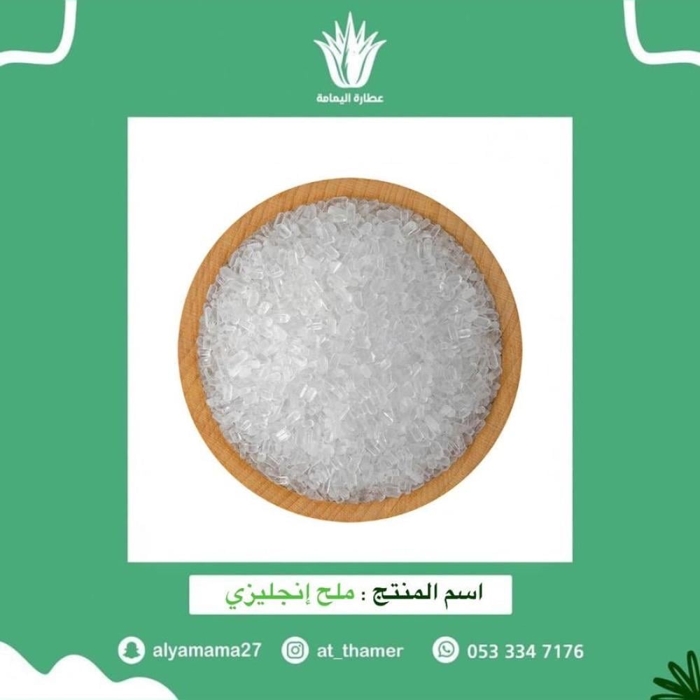 يختلف الملح الإنجليزي تماماً عن ملح الطعام، ويطلق عليه اسم الملح بسبب تركيبته الكيميائية، كما يطلق عليه اسم ملح المغاطس حيث يتم إذابته في المياه لعمل مغاطس منه. يمتلك الملح الانجليزي طعماً مراً غير محبب، لذلك لا ينصح بوضعه على الطعام، ويظهر على شكل حبيبات كريستالية عديمة اللون تشبه ملح الطعام.